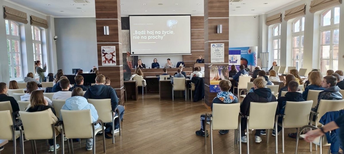 W piątkowe przedpołudnie w sali konferencyjnej Urzędu Miejskiego w Tczewie odbyła się debata profilaktyczna pn. „Uzależnienia”, której głównym tematem było hasło „Bądź haj na życie, a nie na prochy”. Spotkanie otworzyła policyjna profilaktyk, która przywitała zaproszonych gości i uczestników, wśród których była m.in. wiceprezydent miasta Tczewa – pani Joanna Grabowska. Policjantka omówiła najważniejsze zagadnienia związane z profilaktyką społeczną, zwracając uwagę na to, jak łatwo młodzi ludzie mogą wpaść w uzależnienie i jak ważna jest rola rodziców, nauczycieli i rówieśników w zapobieganiu temu zjawisku. Przypomniała również o dostępnych narzędziach wspierających bezpieczeństwo mieszkańców, takich jak aplikacja „Moja Komenda” oraz Krajowa Mapa Zagrożeń Bezpieczeństwa, dzięki której można zgłaszać różnego rodzaju zagrożenia występujące w lokalnym środowisku. Następnie głos zabrali przedstawiciele wspólnoty Anonimowych Narkomanów (NA), którzy opowiedzieli o zasadach działania grupy, idei 12 kroków i swojej drodze do wolności od nałogu. Ich szczere historie pokazały, jak trudna, ale możliwa do pokonania jest walka z uzależnieniem. Swoimi doświadczeniami podzieliła się także dr Paulina Grzonka, która na co dzień pracuje z osobami borykającymi się z problemami uzależnień. Opowiedziała o swojej pracy oraz o sytuacjach, z jakimi spotykała się w środowisku szkolnym. Na zakończenie spotkania poprowadziła 20-minutową relaksację, mającą na celu pokazanie uczestnikom prostych sposobów radzenia sobie ze stresem i napięciem dnia codziennego.