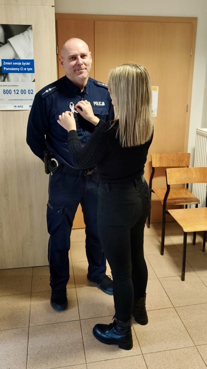 Dzielnicowi i pracownicy MOPS wspólnie przeciw przemocy – symbolicznie przypięli białe wstążki