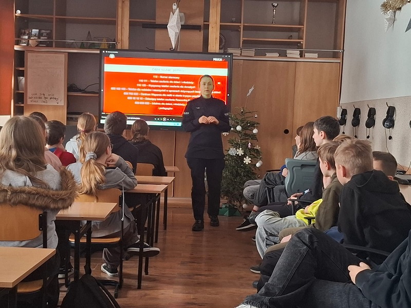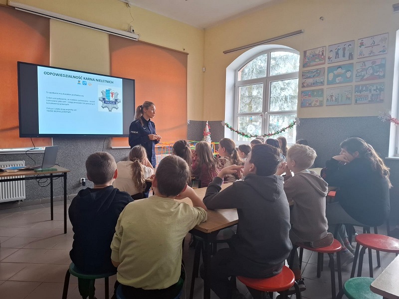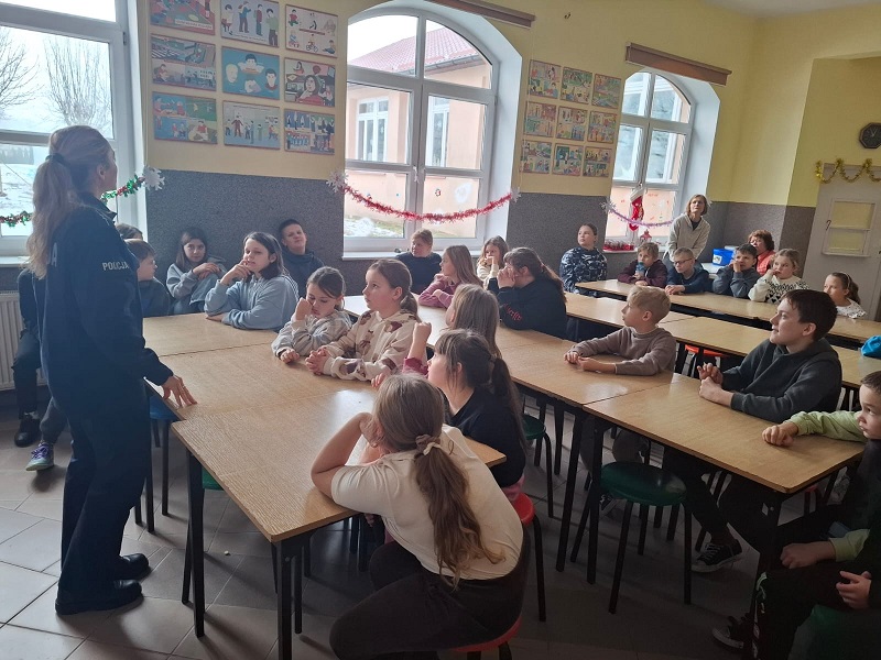 Policyjna profilaktyk odwiedziła Szkołę Podstawową w Małej Słońca, gdzie spotkała się z uczniami klas od trzeciej do ósmej. Rozmowy były dostosowane do wieku dzieci i dotyczyły spraw, z którymi młodzi ludzie mogą spotkać się na co dzień. Podczas spotkania poruszono temat odpowiedzialności karnej nieletnich. Policjantka wyjaśniła, jakie zachowania mogą mieć poważne konsekwencje i dlaczego warto myśleć o skutkach swoich decyzji. Dużo uwagi poświęcono również hejtowi – zarówno w Internecie, jak i w życiu codziennym. Uczniowie dowiedzieli się, że słowa mogą ranić, a anonimowość w sieci nie oznacza braku odpowiedzialności. Nie zabrakło także rozmowy o emocjach i trudnych sytuacjach. Policjantka zachęcała uczniów, aby w chwilach kryzysu nie zostawali sami z problemami i szukali pomocy u dorosłych, nauczycieli, rodziców lub specjalistów. Podkreślono, że proszenie o pomoc jest oznaką siły, a nie słabości. Na zakończenie spotkania przypomniano podstawowe zasady bezpiecznego spędzania ferii zimowych – zarówno podczas zabaw na świeżym powietrzu, jak i w domu. Uczniowie dowiedzieli się, jak unikać zagrożeń i jak reagować w sytuacjach, które mogą być niebezpieczne.